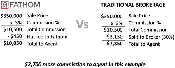 Another reason why Fathom Realty’s commission model makes sense is because it allows agents to directly compete against discount brokerages (companies who charge a discounted commission or flat fee to their clients). While Fathom is not a discount brokerage, our flat transaction fee allows our agents to earn more money and therefore charge whatever commission they need to in order to be highly competitive. Many traditional brokerages strongly discourage their agents from discounting fees because it directly affects the brokerage’s revenue, while Fathom’s flat fee is not affected. I believe that traditional brokerages will continue to be squeezed by new disruptors and continue to lose agents, while Fathom is able to directly compete on both fronts.
